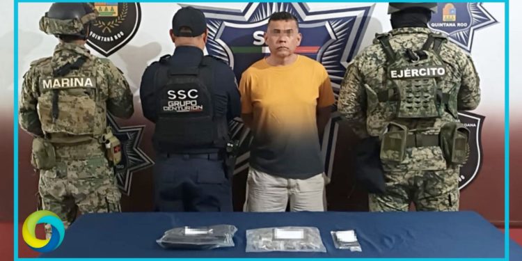 Elementos de la Secretaría de Seguridad Ciudadana del Grupo Centurión, de la Secretaría de Marina y de la Secretaría de la Defensa Nacional, detuvieron a un masculino contando, varias bolsitas de plástico transparente con contenido de vegetal similares a la marihuana en la zona hotelera de...