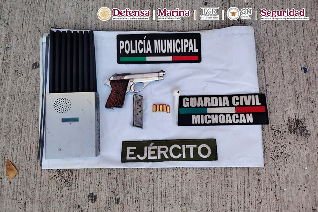 Como parte de las acciones del Plan Michoacán por la Paz y la Justicia, elementos de la Secretaría de la Defensa Nacional (Defensa) y Guardia Nacional (GN), en coordinación con la Secretaría de Marina (Semar), Fiscalía General de la República (FGR) y Secretaría de Seguridad y Protección Ciudadana (SSPC), junto con autoridades locales, detuvieron a 17 personas, aseguraron 10 armas de fuego, 221 cartuchos, 12 cargadores, 3.1 kilos de marihuana y 34 vehículos.