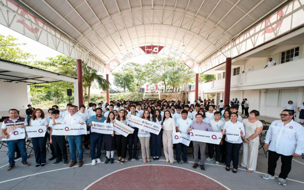 Puerto Morelos.- La gobernadora Mara Lezama Espinosa cumplió una promesa al inaugurar un domo ligero en el Colegio de Bachilleres de Puerto Morelos, obra destinada a mejorar las condiciones para las actividades deportivas, culturales y cívicas de 421 estudiantes de esta institución.