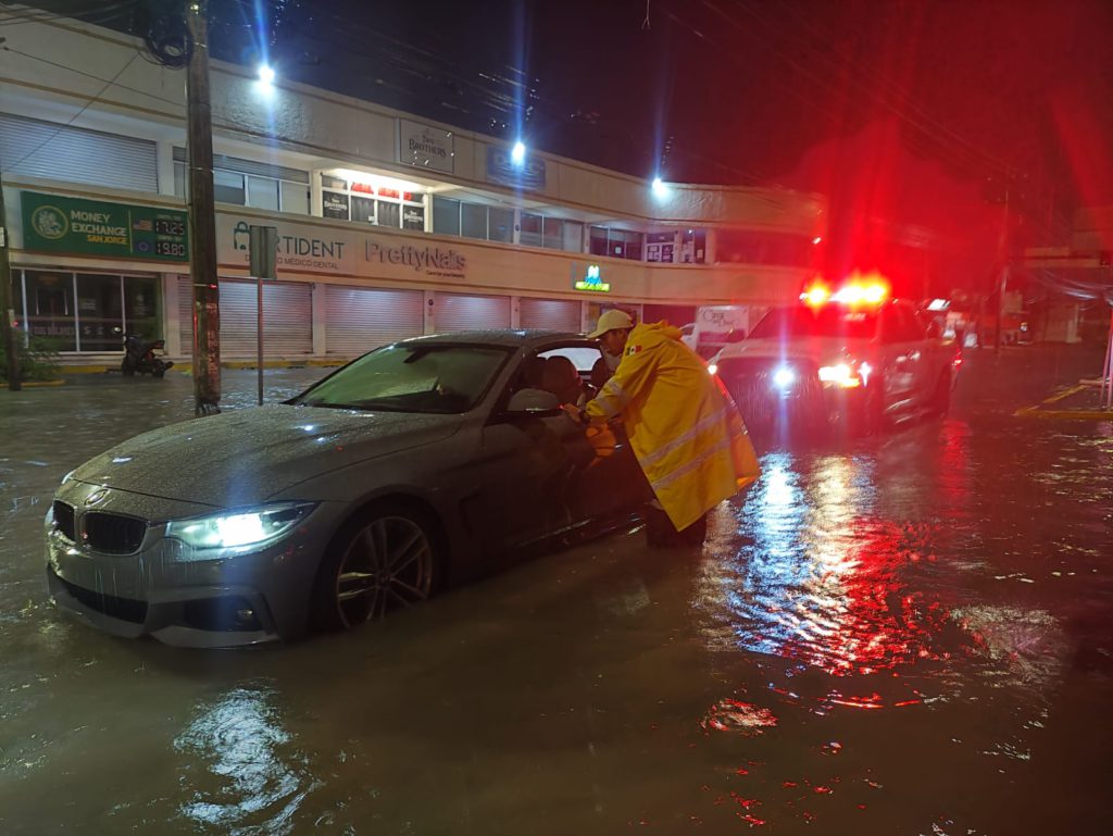 Durante las acciones, se brindó apoyo a un automovilista varado en una vialidad inundada y se cerró de manera preventiva la avenida 30 con calle 50 norte para evitar que otros vehículos quedaran atrapados. El Cuerpo de Bomberos también participó en las labores de apoyo, auxiliando a dos personas atrapadas dentro de un vehículo en la colonia Centro, una de las cuales requirió atención prehospitalaria básica, sin que se registraran lesiones graves.