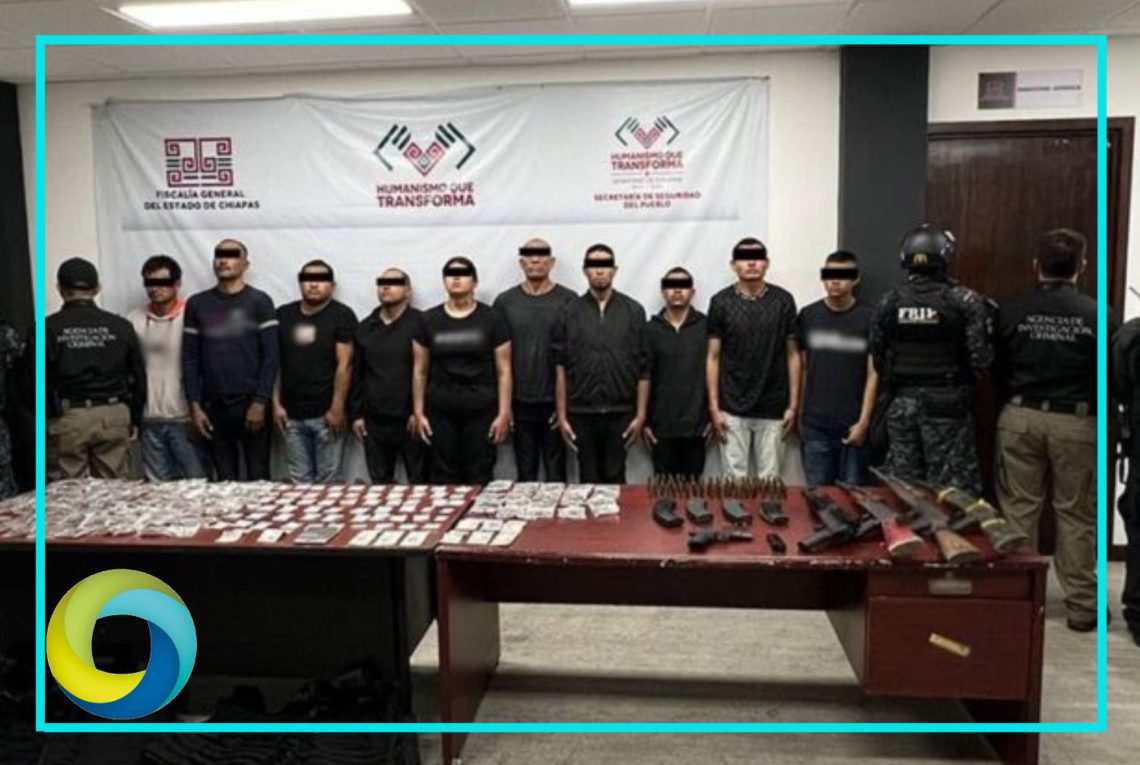 Resultado del trabajo interinstitucional, en el estado de Chiapas, elementos de la Secretaría de la Defensa Nacional (Defensa), Secretaría de Marina (Semar), Fiscalía General de la República (FGR), Guardia Nacional (GN), Secretaría de Seguridad y Protección Ciudadana (SSPC), junto con Fiscalía y Policía Estatal, detuvieron a 12 personas vinculadas a un grupo delictivo, aseguraron armamento y dosis de droga.
