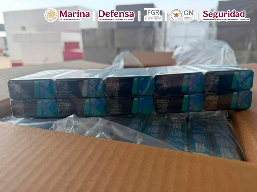 Derivado de trabajos de inteligencia orientados a debilitar las estructuras criminales dedicadas al tráfico de mercancía ilícita, elementos de la Secretaría de Marina (Semar) y la Aduana del Aeropuerto Internacional de la Ciudad de México (AICM), junto con la Secretaría de Seguridad y Protección Ciudadana (SSPC), Fiscalía General de la República (FGR), Secretaría de la Defensa Nacional (Defensa) y Guardia Nacional (GN), aseguraron aproximadamente 19,779.5 kilos de tabaco ilegal, equivalentes a 954,380 cajetillas de cigarrillos, con un valor comercial estimado en más de 70.7 millones de pesos, durante revisiones realizadas a seis cargamentos provenientes de Narita, Japón, entre el 22 de diciembre de 2025 y el 3 de enero de 2026.