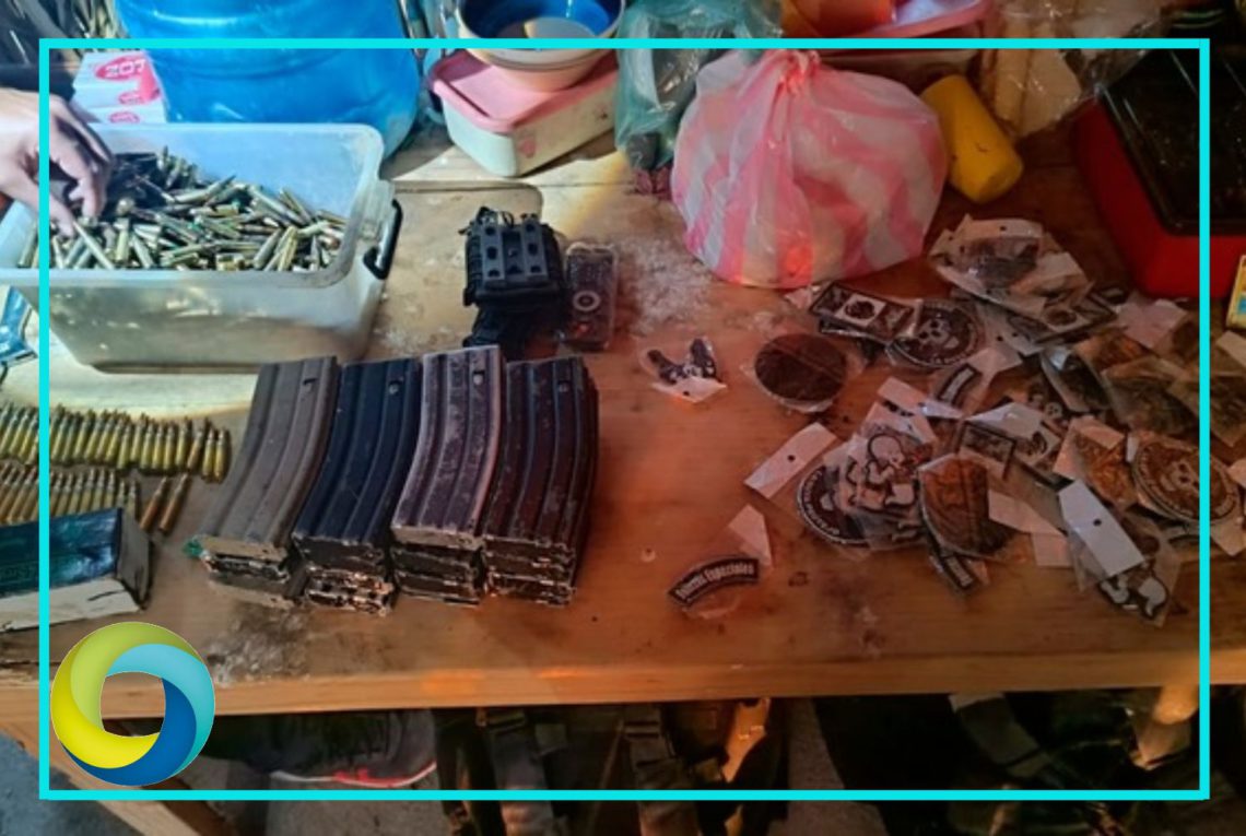 Durante la intervención se aseguraron seis armas largas, 27 cargadores, 760 cartuchos útiles, 13 chalecos balísticos, 19 cascos balísticos, 14 pares de botas, diverso equipo táctico y 54 dosis de metanfetamina.