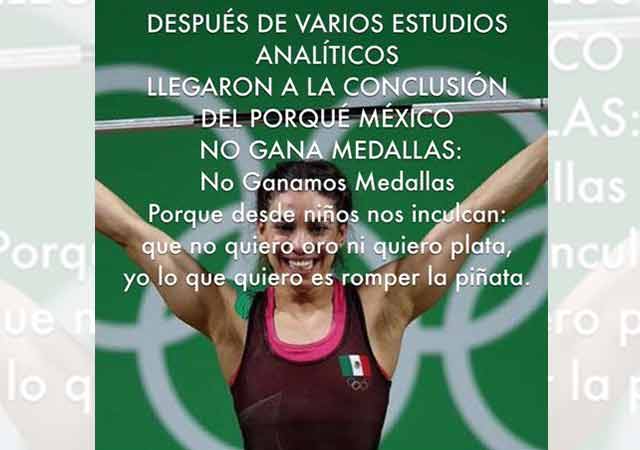 Aunque el equipo olímpico de México todavía no ha ganado ninguna medalla en los Juegos Olímpicos de Río de Janeiro, el país mantiene el ánimo alto y apuesta por los memes para digerir con humor la falta de triunfos.