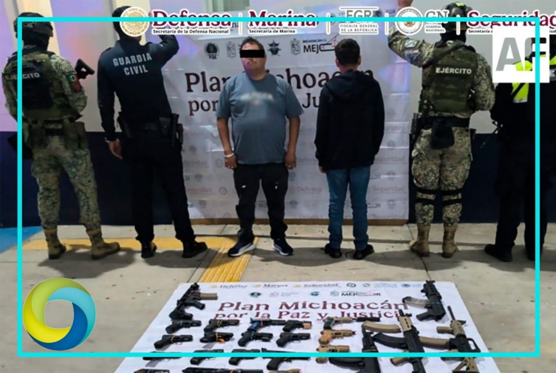 Como parte de las acciones del Plan Michoacán por la Paz y la Justicia, elementos de la Secretaría de la Defensa Nacional (Defensa) y Guardia Nacional (GN), en coordinación con la Secretaría de Marina (Semar), Fiscalía General de la República (FGR) y Secretaría de Seguridad y Protección Ciudadana (SSPC), junto con autoridades locales, detuvieron a tres personas, aseguraron 36 armas de fuego, 1,086 cartuchos, 61 cargadores, un artefacto explosivo improvisado, nueve vehículos y equipo táctico.