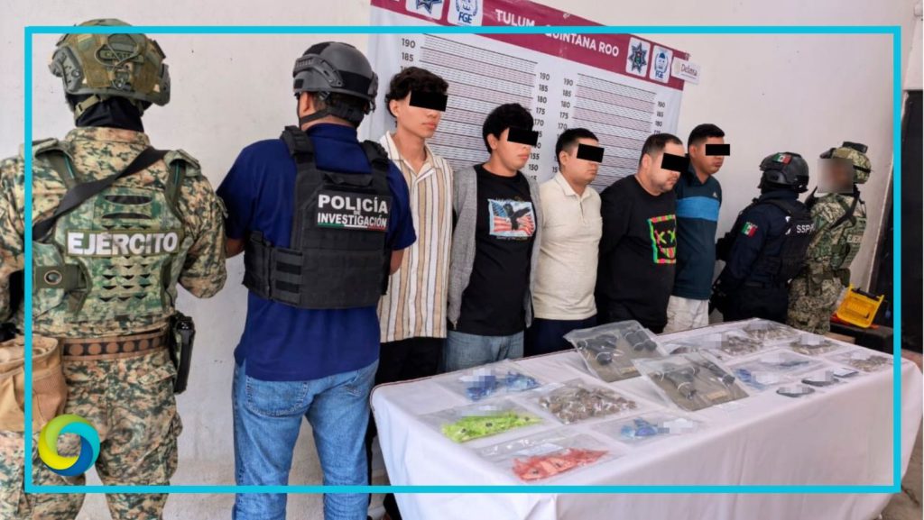 Tulum.- Derivado de trabajos de investigación y operativos por calles de este municipio, elementos de la Policía de Investigación, adscritos a la Fiscalía General del Estado, en coordinación con la Secretaría de la Defensa Nacional y Policía Municipal, detuvieron en flagrancia a cinco masculinos y una femenina, en dos acciones separadas, por su presunta relación en hechos posiblemente constitutivos de delitos contra la salud en su modalidad de narcomenudeo.