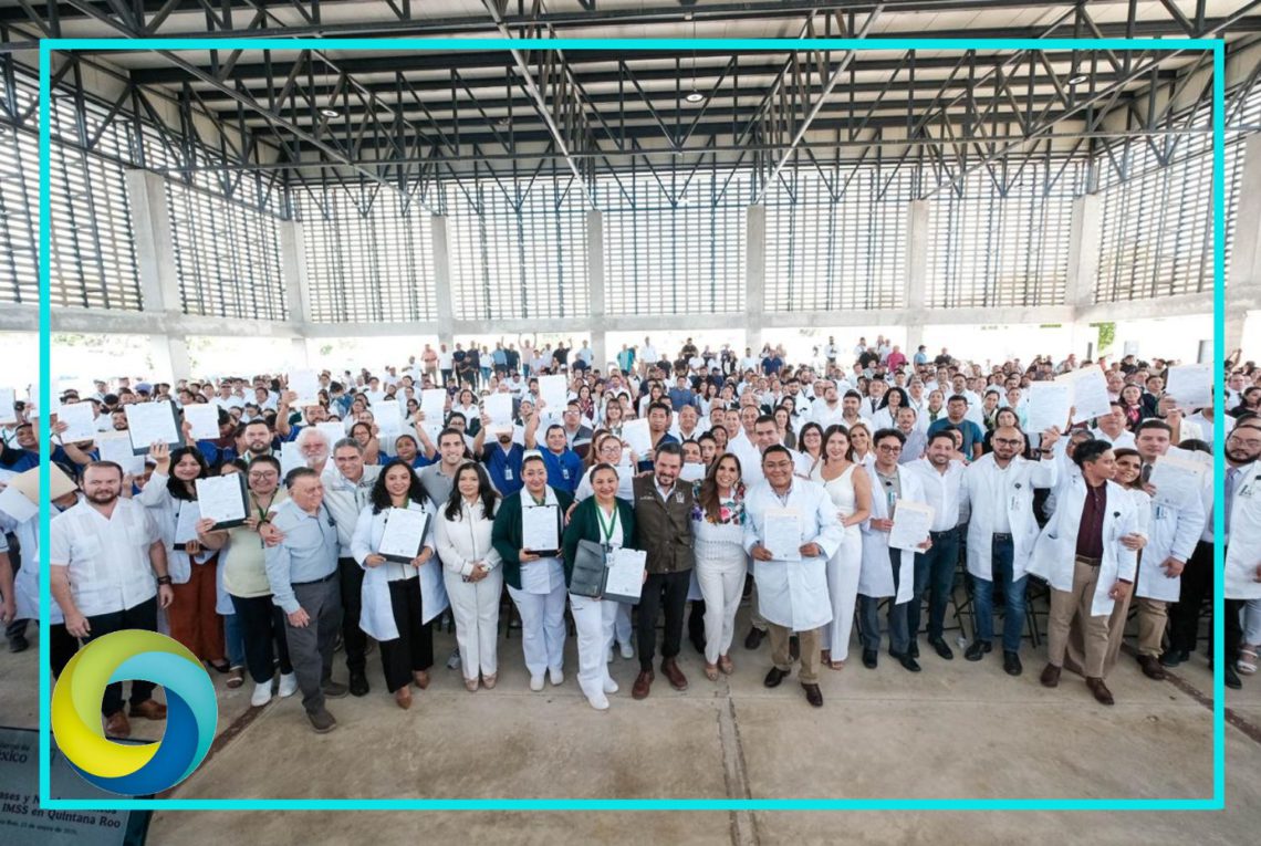 Cancún.- Un total de 71 colaboradoras y colaboradores del Instituto Mexicano del Seguro Social (IMSS) en Quintana Roo recibieron sus bases laborales durante un evento encabezado por la gobernadora Mara Lezama Espinosa y el director general del IMSS, Zoé Robledo.