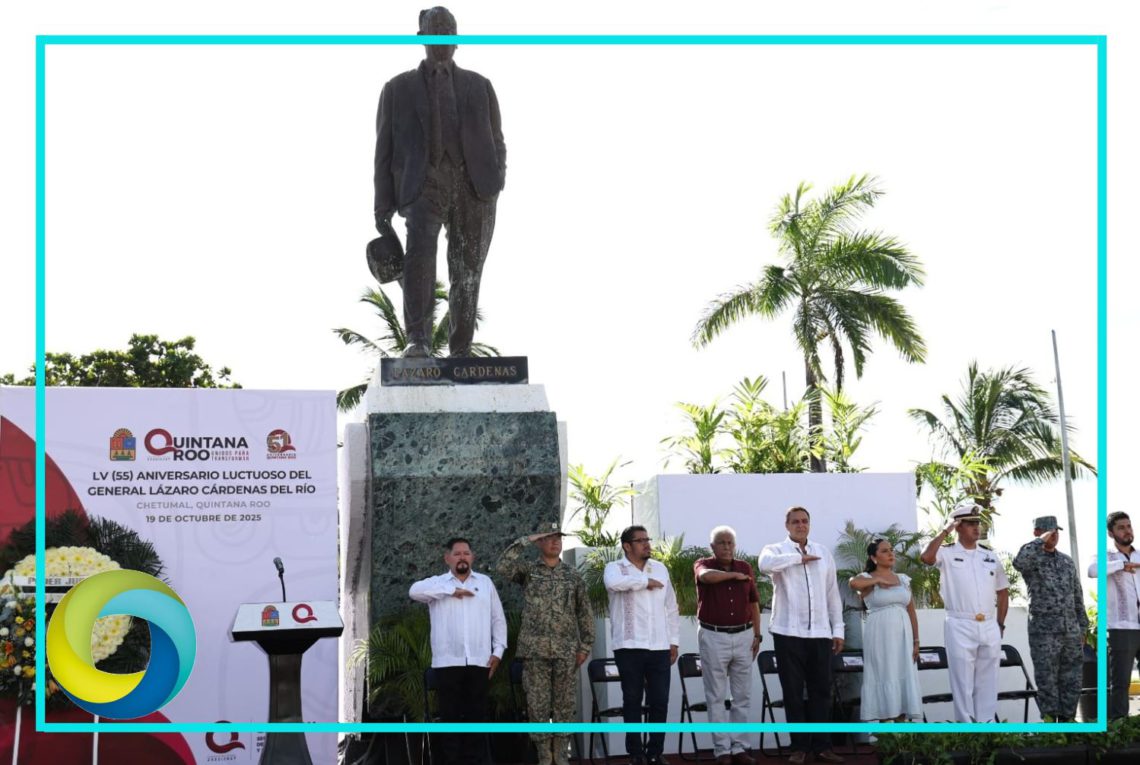 Chetumal. – El Gobierno del Estado de Quintana Roo, a través de la Secretaría de Finanzas y Planeación (SEFIPLAN), conmemoró el 55 aniversario luctuoso del general Lázaro Cárdenas del Río, quien es recordado con gratitud por haber restituido el Territorio Federal de Quintana Roo en 1935, acto que reafirmó la identidad y unidad de esta región.