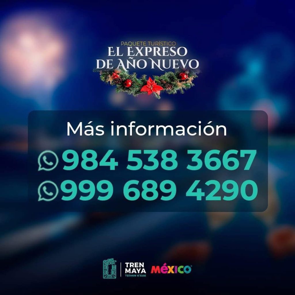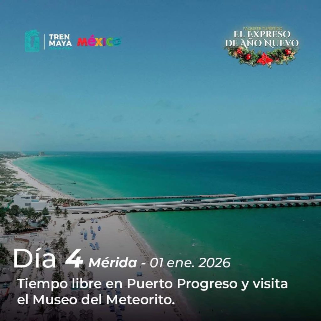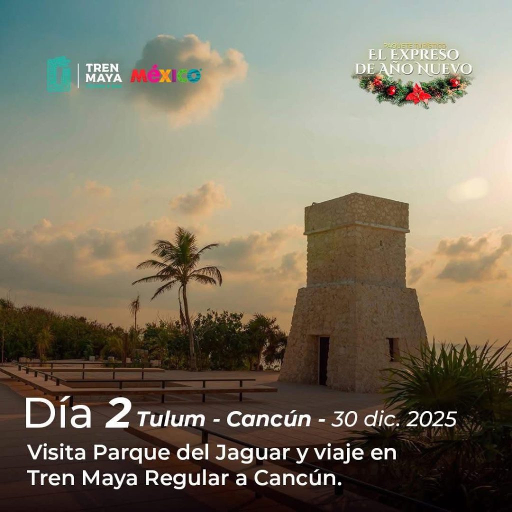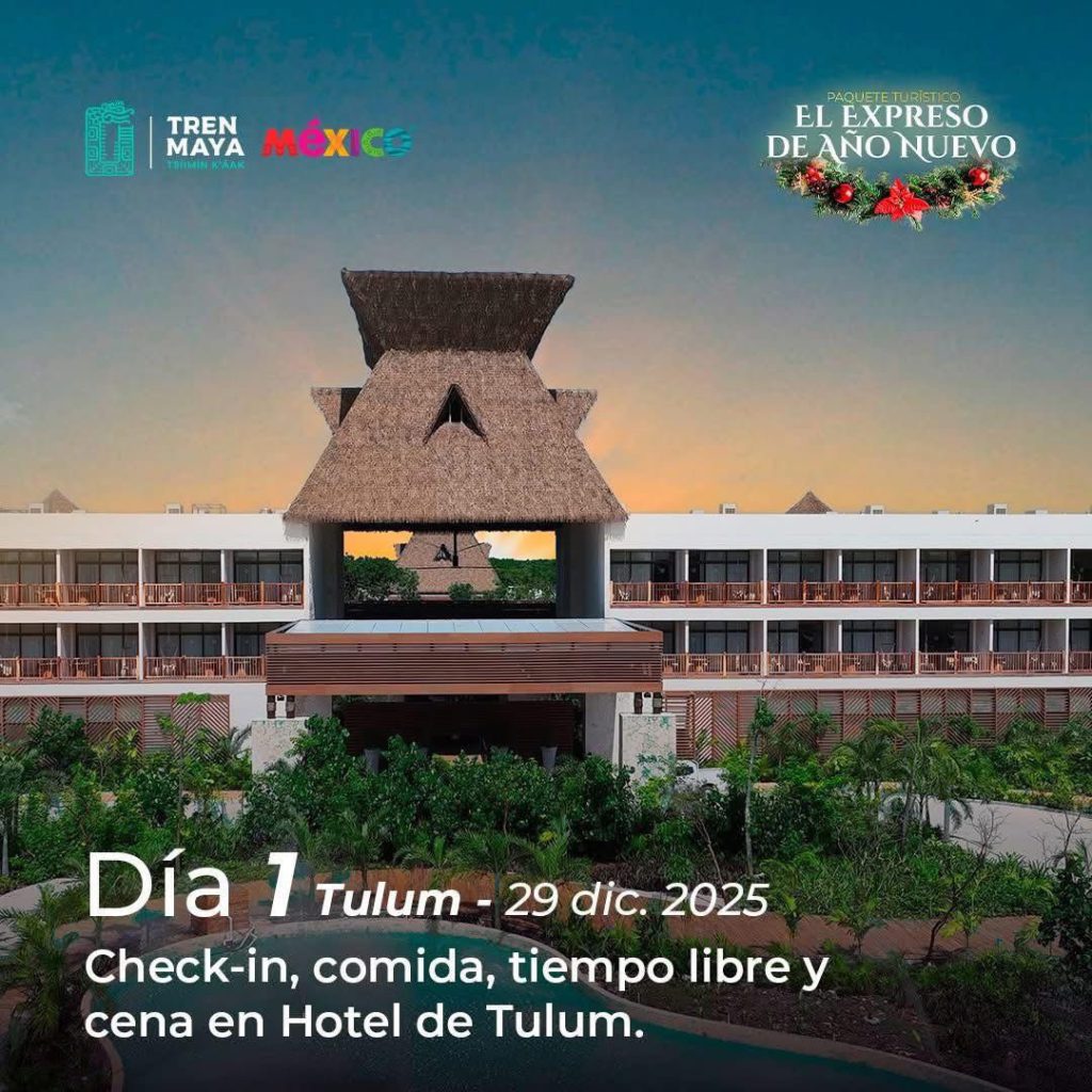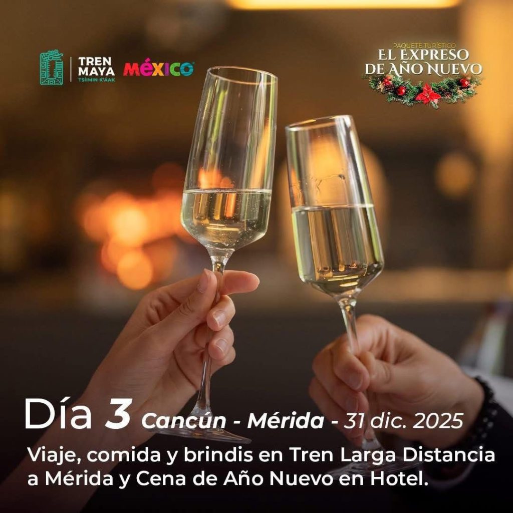Durante el recorrido, las y los pasajeros podrán disfrutar de actividades culturales, visitas a playas, zonas arqueológicas y museos, además de un exclusivo brindis de Año Nuevo mientras el tren avanza rumbo a Mérida, donde culminará la noche festiva.