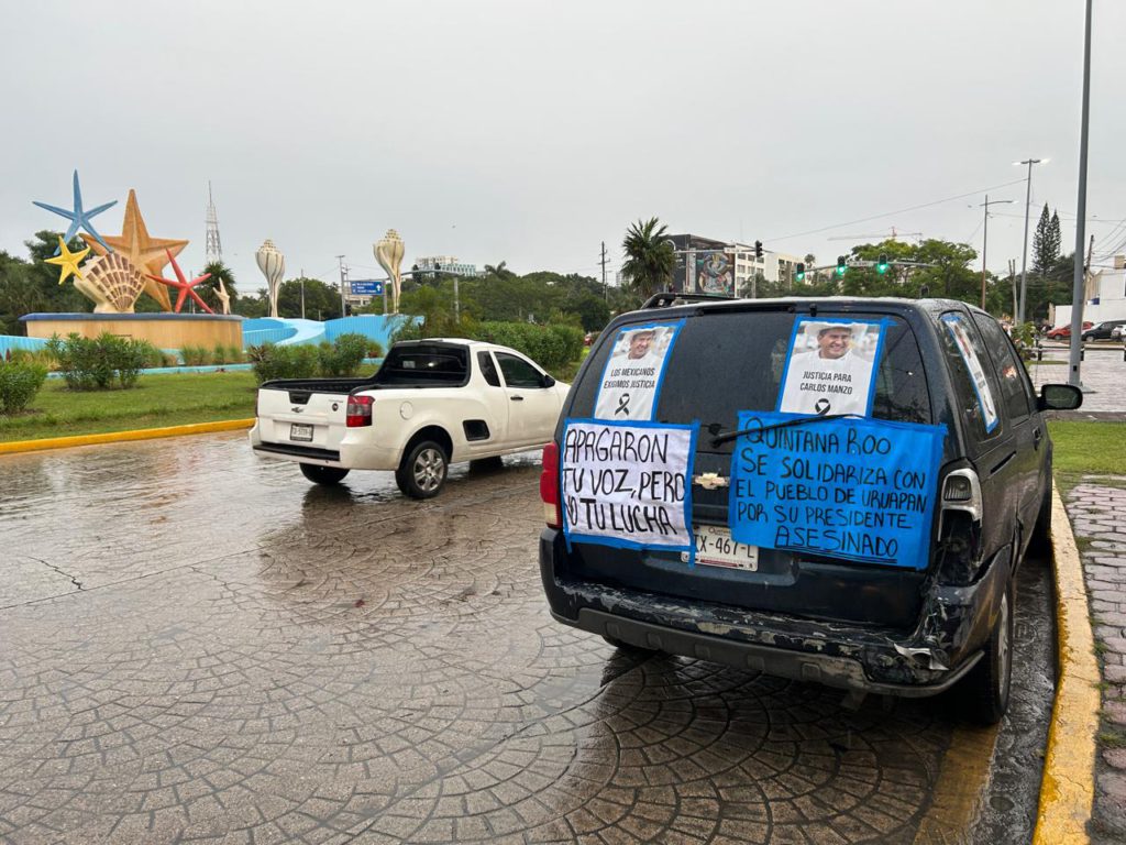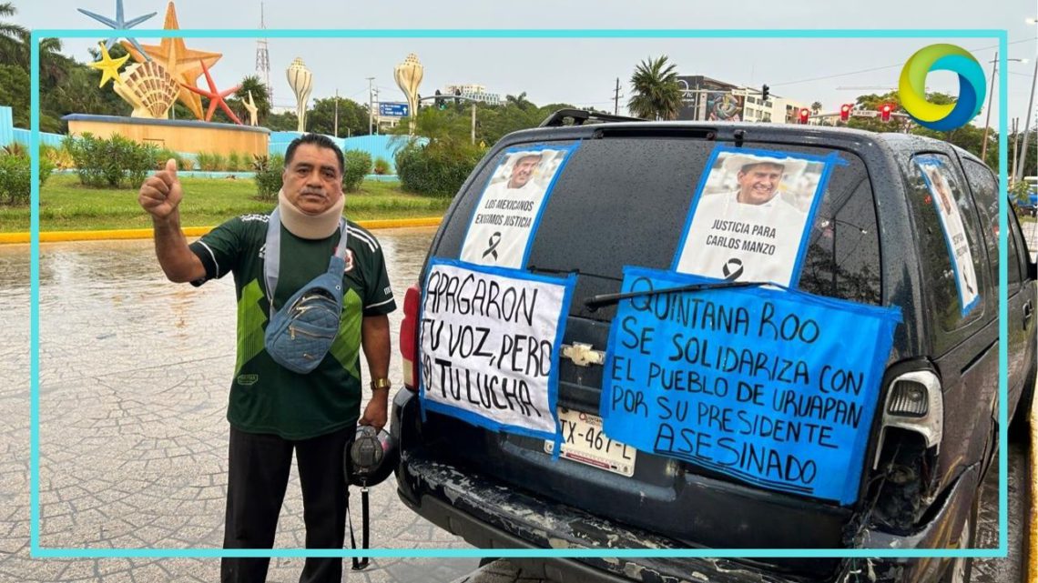 Cancún.- Una marcha que había sido convocada este día en la glorieta de “El Ceviche” en reclamo por el asesinato de Carlos Manzo, alcalde de Uruapan, fue contestada solo por una persona, quien auxiliado de un megáfono, invitaba a la ciudadanía a unirse a la manifestación acordada en redes sociales para este 15 de noviembre.