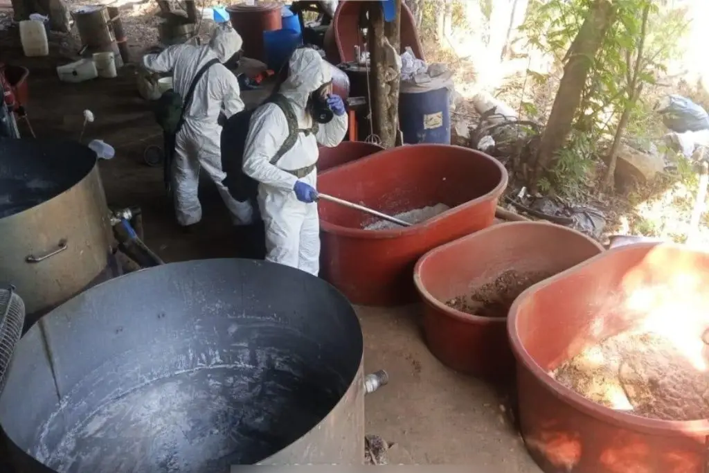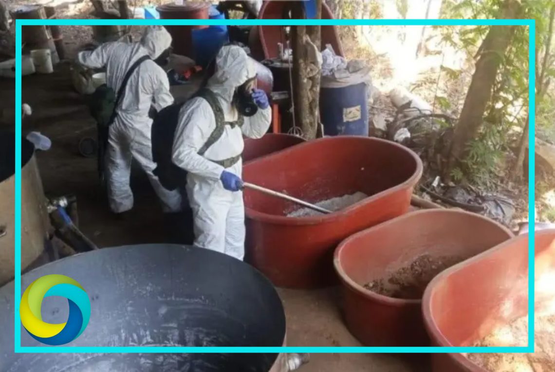 En un comunicado, la Secretaría de Seguridad y Protección Ciudadana (SSPC) informó que en una primera acción, en la localidad La Cuadrilla del citado municipio, se aseguraron aproximadamente 300 kilos de droga sintética, 150 kilos de la misma sustancia en proceso de secado, así como 24.000 litros de precursores químicos y alrededor de 20.000 kilos de sustancias químicas sólidas.