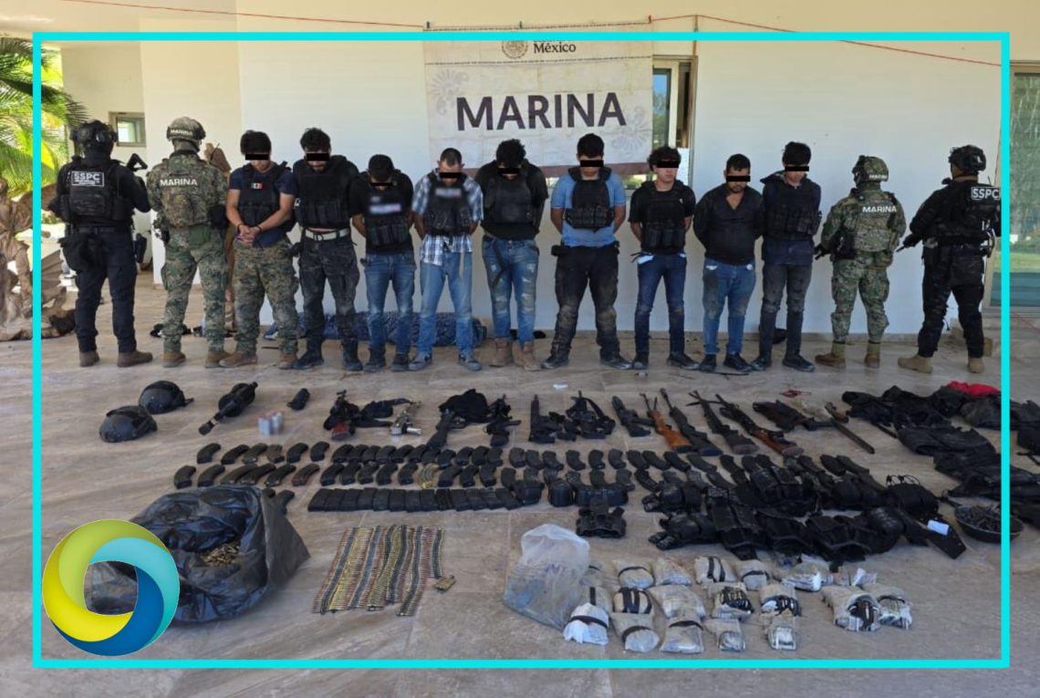Resultado de los trabajos de reforzamiento de seguridad en el estado de Sinaloa, elementos de la Secretaría de Marina (Semar) a través de la Armada de México, junto con Secretaría de la Defensa Nacional (Defensa), Fiscalía General de la República (FGR), Guardia Nacional (GN) y Secretaría de Seguridad y Protección Ciudadana (SSPC), detuvieron a nueve personas, aseguraron armamento, municiones y vehículos.