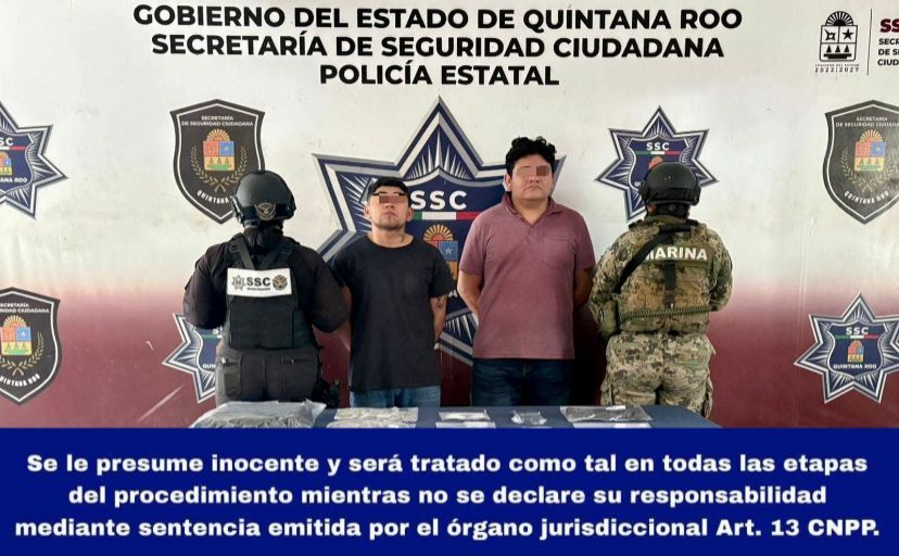 Benito Juárez;- En recorridos de prevención, elementos del Grupo de Investigación de la Secretaría de Seguridad Ciudadana y la Secretaría de Marina detuvieron a dos sujetos en posesión de varias dosis de droga en Cancún.