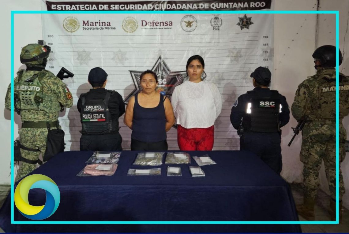 Elementos de la Secretaría de Seguridad Ciudadana de Quintana Roo lograron la detención de Celia “N” y Zitlaly Ariana “N”, presuntas responsables de delitos contra la salud y presuntamente vinculadas a una célula delictiva identificada como Sinaloa, facción grupo de Doña Leti, dedicada al cobro de piso a comerciantes de la Riviera Maya.