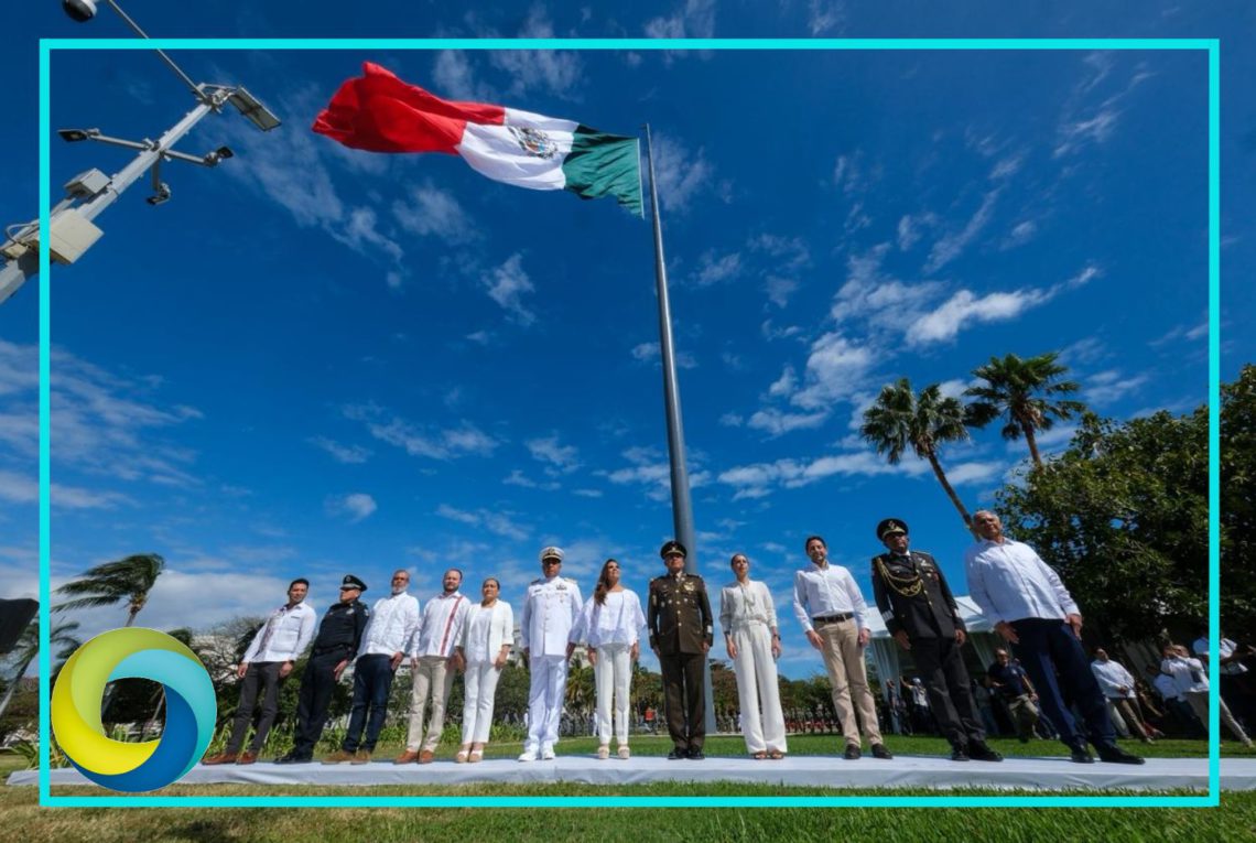 Durante la ceremonia que se realizó en el asta bandera monumental del bulevar Kukulcán, en la zona hotelera de Cancún, la titular del Ejecutivo resaltó que Quintana Roo es un estado diverso que convive bajo una sola bandera: “la bandera de México que hoy honramos. Aquí convivimos culturas, acentos, todos abrazados por el verde, blanco y rojo que nos dan identidad”.