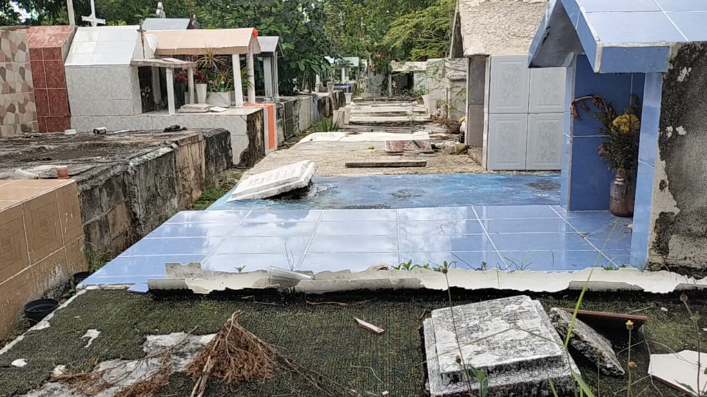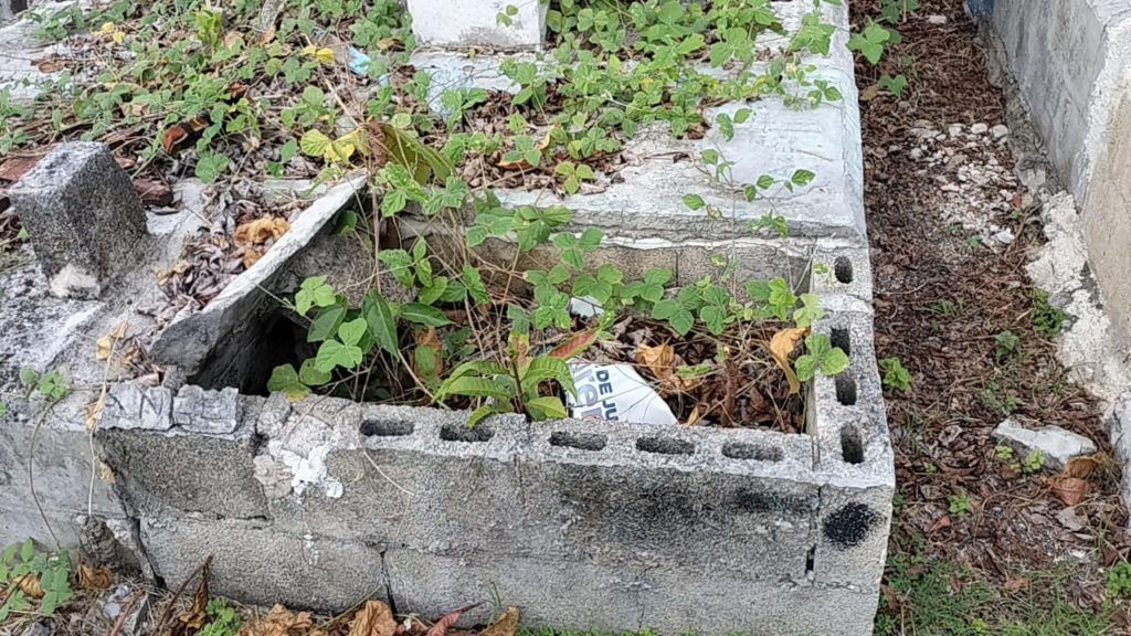 Cancún.- Una burla y una simulación es lo que hizo la administración de Ana Paty Peralta de la Peña en el Panteón “Los Olivos” en el pasado Día de Muertos, pues únicamente colocó algunas decoraciones en el pasillo central, y barrió “para la foto”, dejando el resto de este recinto en total abandono, con basura, vegetación, moscos y tumbas abiertas.