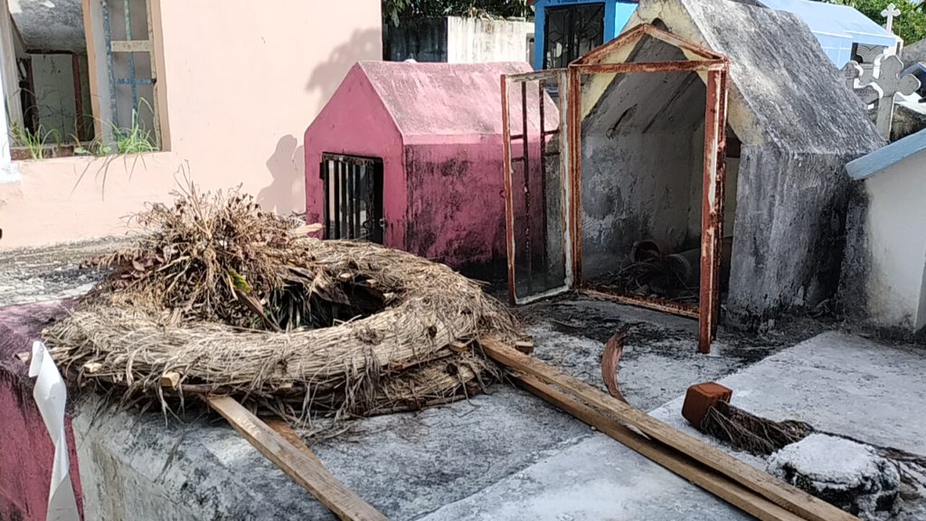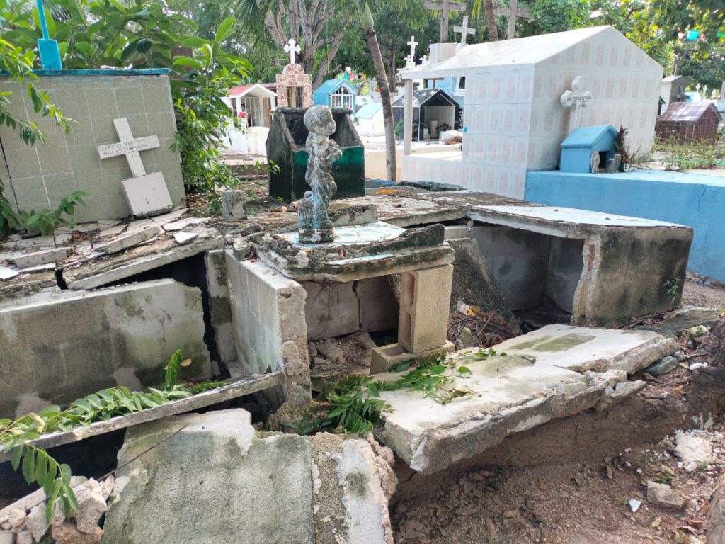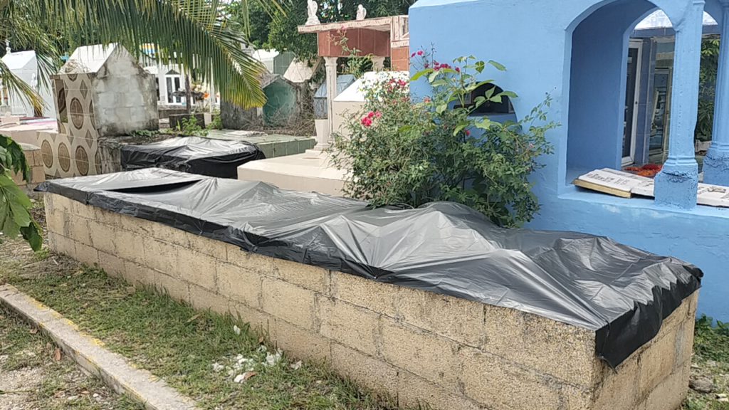 Las tumbas destruidas o abiertas son algo común en este lugar. En lugar de remediar esto, el gobierno municipal colocó bolsas de nylon sobre algunas tumbas, solo aquellas en el pasillo central, para que la presidenta municipal pudiera tomarse sus fotos.