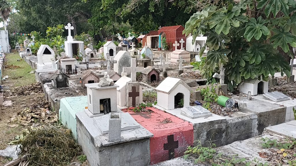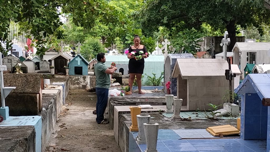 Muchos de los cancunenses acudieron con artículos de limpieza, para despejar y asear las tumbas, que asumen con su responsabilidad, pero se toparon con otro problema: casi no hay agua. En todo el panteón, solo hay unas pocas llaves, todas en el pasillo central. Muchas no tienen agua, salvo dos, que apenas tiran un pequeño “hilo” de este vital líquido.
