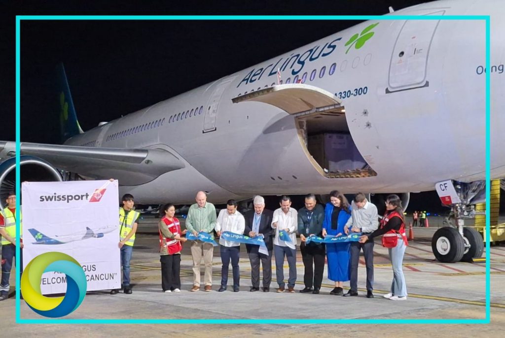 El Aeropuerto Internacional de Cancún recibió este 6 de enero el vuelo inaugural de la aerolínea Aer Lingus procedente de Dublín, Irlanda, marcando el inicio de una nueva conexión aérea directa entre Europa y el Caribe mexicano.