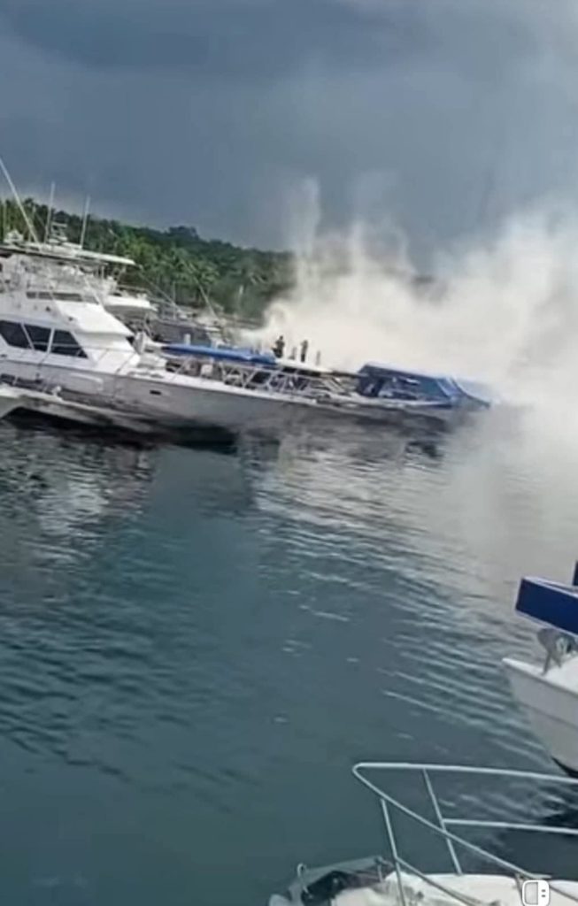 La embarcación afectada comenzó a quemarse, despidiendo humo y llamas, lo que fue atendido por otros marinos y voluntarios presentes en la marina.