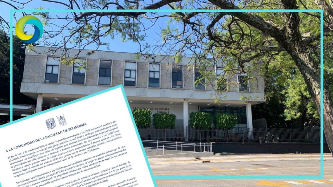 La Facultad de Economía de la Universidad Nacional Autónoma de México (UNAM) informó la noche del lunes que suspendieron sus clases presenciales tras reportar otra amenaza de agresión contra la comunidad estudiantil.