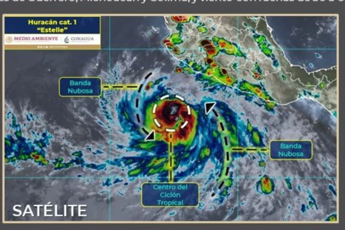 El ciclón tropical “Estelle” continúa su paso por el territorio mexicano como huracán categoría 1 en la escala de Saffir-Simpson e intensificará su paso por el suroeste del Océano Pacífico, informó este domingo el Servicio Meteorológico Nacional (SMN) y la Comisión Nacional del Agua (Conagua).