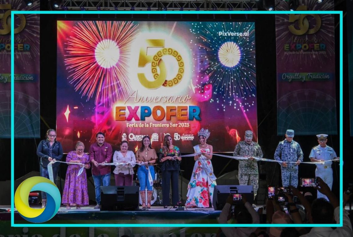 En un ambiente de fiesta, tradición y orgullo, la gobernadora Mara Lezama Espinosa y la presidenta municipal de Othón P. Blanco, Yensunni Martínez Hernández, inauguraron la edición número 50 de la EXPOFER, la Feria de la Frontera Sur, un evento emblemático que celebra medio siglo de historia y representa la identidad cultural de las y los chetumaleños.
