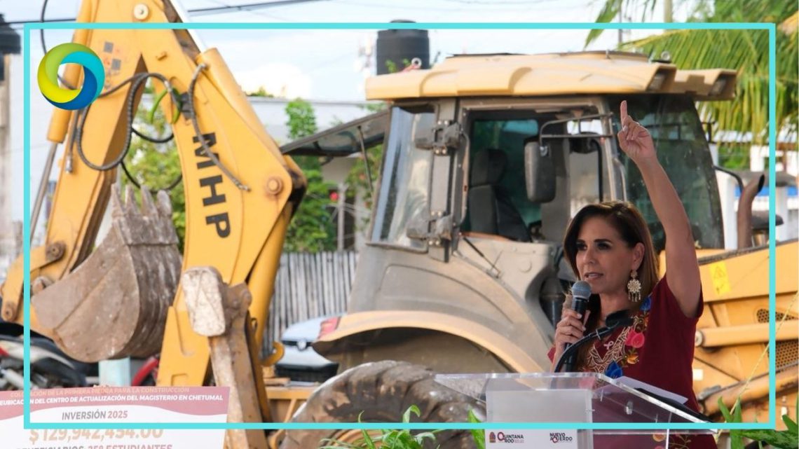 Chetumal.- La gobernadora Mara Lezama Espinosa colocó la primera piedra para la construcción de la reubicación del Centro de Actualización del Magisterio (CAM) en Chetumal, una obra con una inversión de poco más de 129 millones de pesos que garantizará un espacio funcional, seguro y adecuado para la comunidad normalista.
