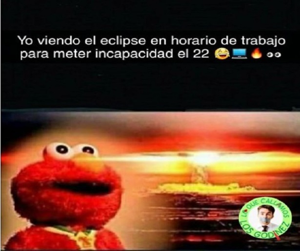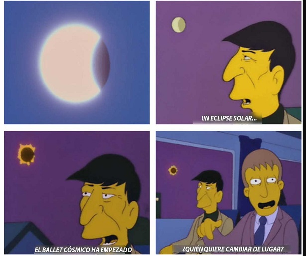 CIUDAD DE MÉXICO. –A unas horas de que inicie ‘el ballet cósmico’; es decir, el eclipse solar, los usuarios de las redes sociales han inundado éstas con memes en los que Los Simpsons, personajes de otras caricaturas, las cholas de Chalco, entre otros, son los principales actores. Aquí algunos de ellos: