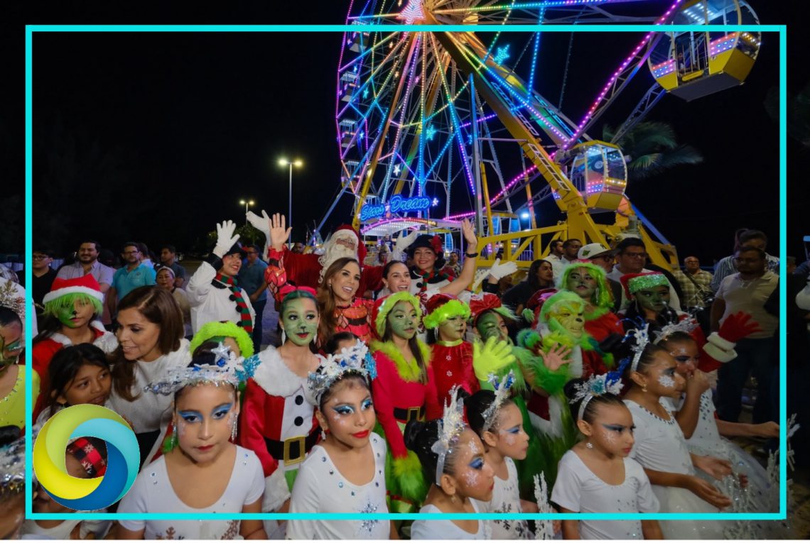 Pero además, una espectacular rueda de la fortuna, bien iluminada y atractiva. Un árbol navideño, una feria, el back fotográfico y un elenco artístico y cultural.