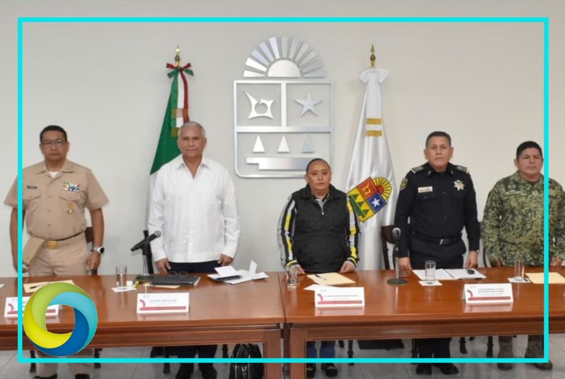En la conferencia de prensa estuvieron presentes también la Secretaria de Gobierno, Cristina Torres Gómez; Contralmirante Julio César Gómez Torres, Secretario de Seguridad Ciudadana, Coronel de Infantería Vicente Méndez Hernández, Jefe de Estado Mayor de la 34 Zona Militar y Contralmirante Diplomado de Cuerpo de Estado Mayor Javier Mendoza Rosales, Jefe de Estado Mayor de la XI Zona Naval.
