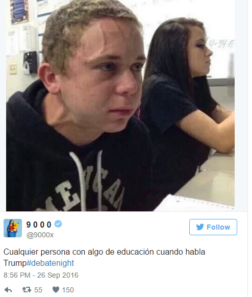 Otros memes pusieron el acento en las marcadas diferencias en cuanto a la brillante capacidad intelectual y formación académica de la demócrata y al discurso de Trump, mucho más básico, emocional y sexista.
