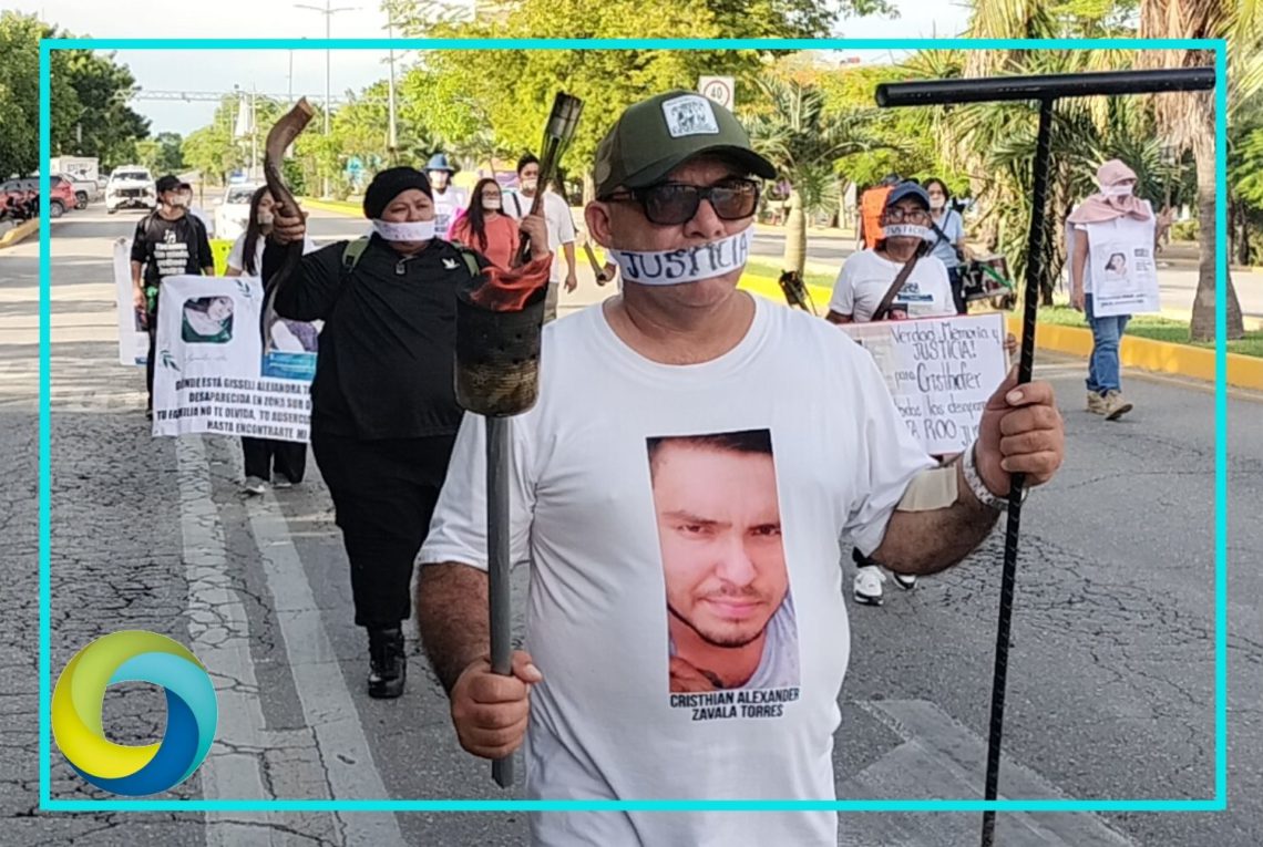 El grupo inició su marcha a lo largo de la avenida Tulum, muchos portando antorchas, además de imágenes de familiares desaparecidos. Varios tenían su boca tapada con cinta, con la leyenda “justicia”.