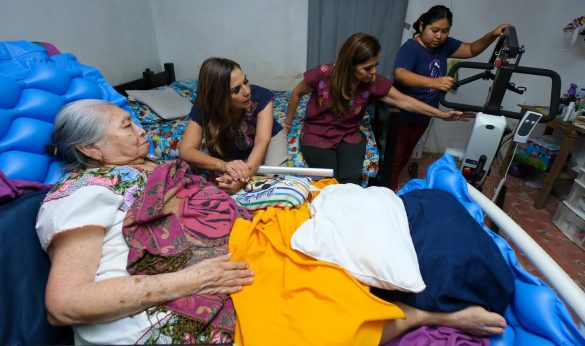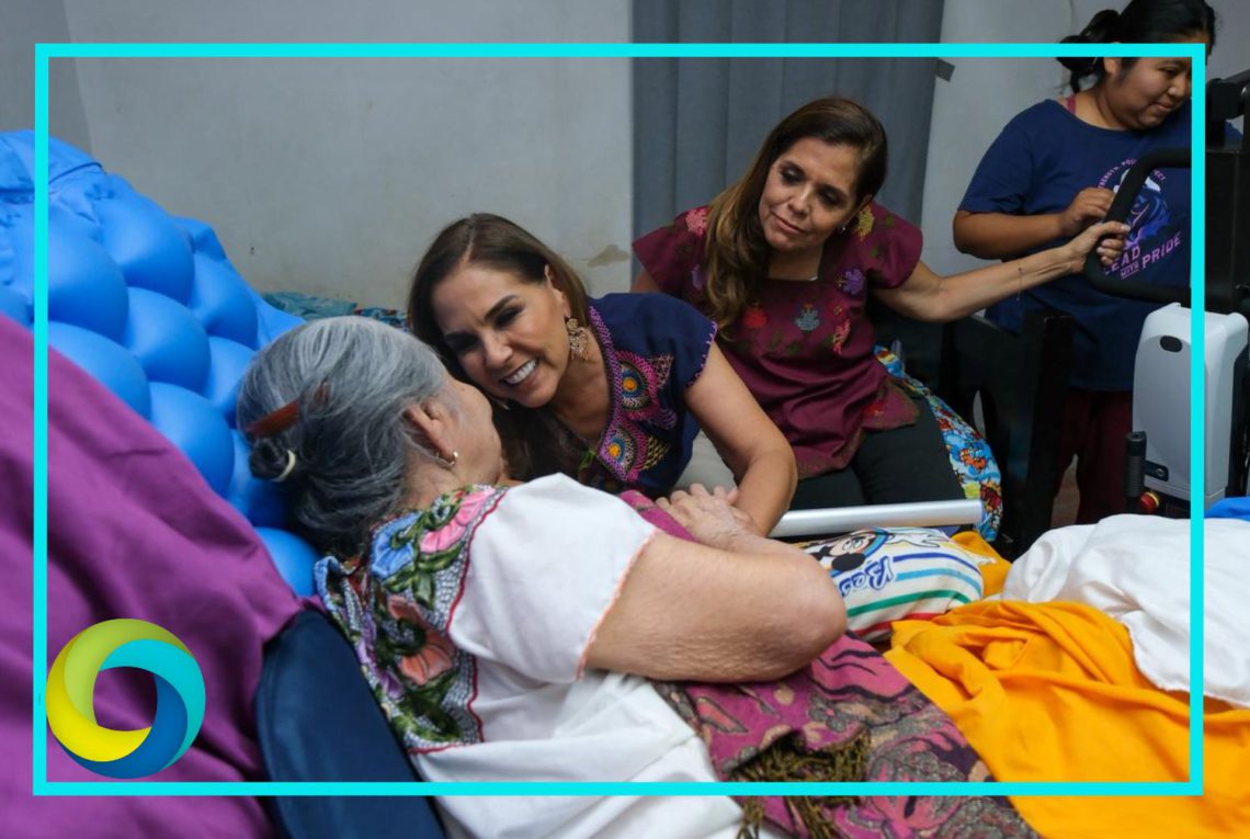 La gobernadora Mara Lezama Espinosa y la presidenta honoraria del Sistema DIF Quintana Roo, Verónica Lezama, visitaron a la abuelita María Magdalena, de 88 años de edad, a quien le entregaron una grúa hidráulica para mejorar sus condiciones de vida.