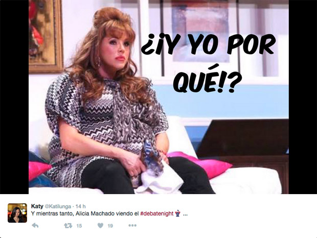 Los polémicos comentarios de Donald Trump contra Alicia Machado que Hillary Clinton trajo a colación en el debate celebrado anoche ya han dado pie a la creación de memes.