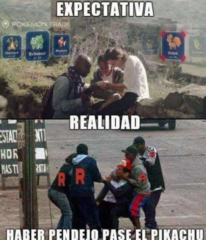Otro tema común de estos “memes” es, ¿qué pasa cuando entras a un mal vecindario, teléfono en mano, atrapando pokémones? ¡Seguramente nada bueno!