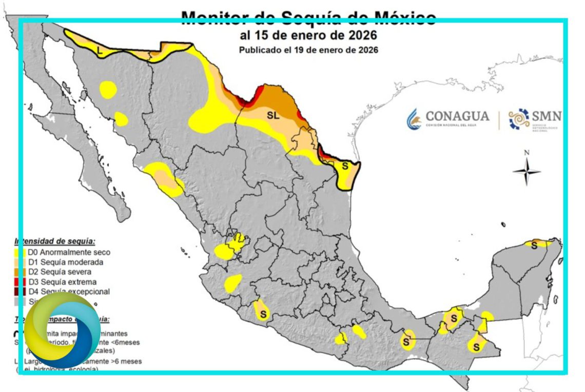 Con base en el más reciente reporte del Monitor de Sequía en México, al 15 de enero de 2026, solo el 7.4 por ciento (%) de la superficie del país registra sequía de moderada a excepcional, por lo que 2 mil 168 municipios -de un total de 2 mil 478-, localizados en 13 entidades, se encuentran libres de esta condición climatológica, informó el Servicio Meteorológico Nacional (SMN) de la Comisión Nacional del Agua (Conagua).