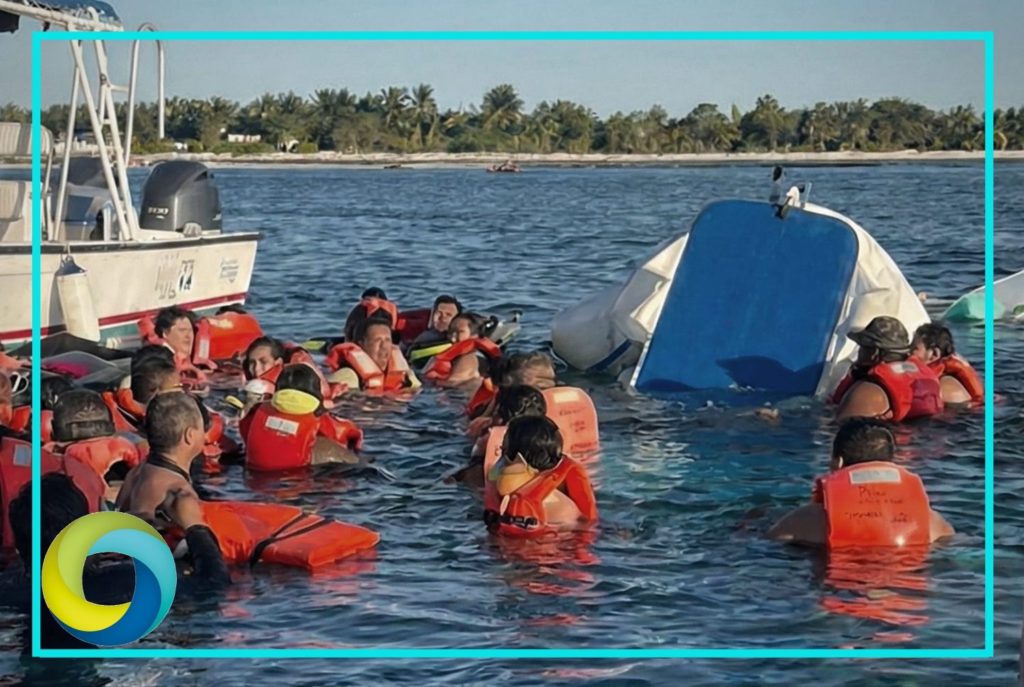 Una embarcación turística con aproximadamente 30 personas a bordo se volcó la tarde del domingo en la costa sur de Cozumel, frente al restaurante Alberto’s, aunque afortunadamente todos los pasajeros fueron rescatados.