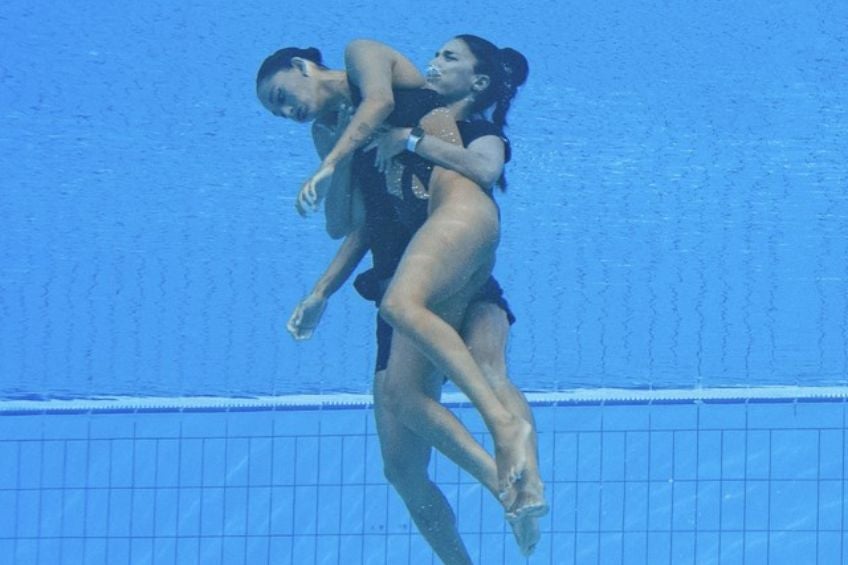 Un percance que se quedó sólo en su susto gracias a la rápida intervención de su entrenadora, la española, Andrea Fuentes, que no dudó en lanzarse a la piscina para rescatar a su pupila.