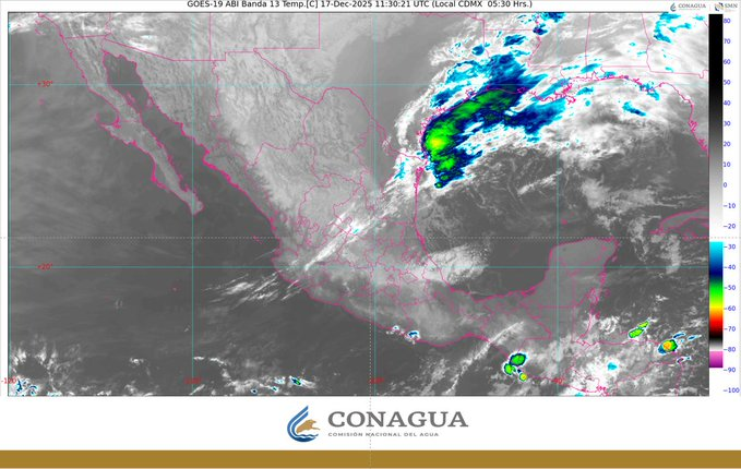 Finalmente, se pronostica la aproximación de un nuevo frente frío durante la noche a la frontera norte de México.