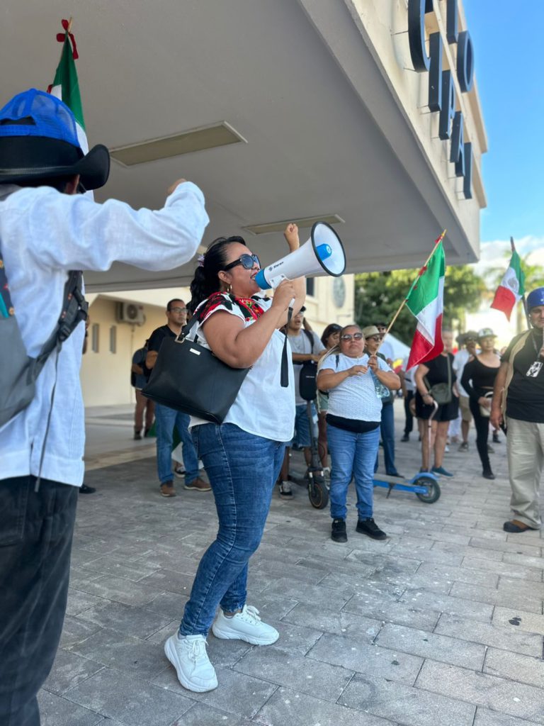 Los inconformes formaron un círculo frente al Palacio Municipal, para escuchar los mensajes dados por distintos manifestantes, quienes se tomaban turnos para hablar a través de un megáfono.