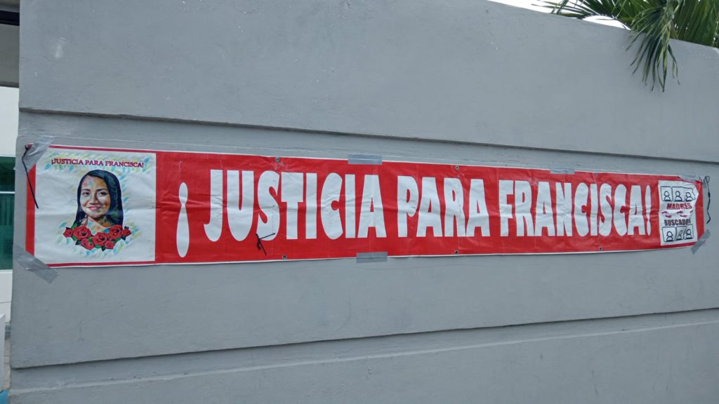 “¡No a los cambios de medidas cautelares!”, exclamaban las inconformes, quienes llevaban varias lonas alusivas a su causa, además de colocar grafiti en la entrada de los tribunales, denunciando la corrupción de esta ex funcionaria de la Fiscalía General del Estado, Rosa María Hernández es acusada de negarse a implementar los protocolos de búsqueda, luego de la desaparición de Francisca Mariner, ocurrido en 2020.