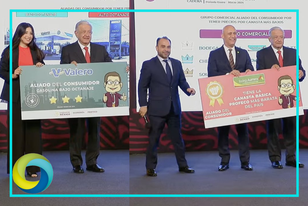 En la conferencia de prensa matutina de este lunes se entregaron reconocimientos a gasolineras y tiendas de autoservicio que durante el primer trimestre de este 2024 mantuvieron precios bajos.