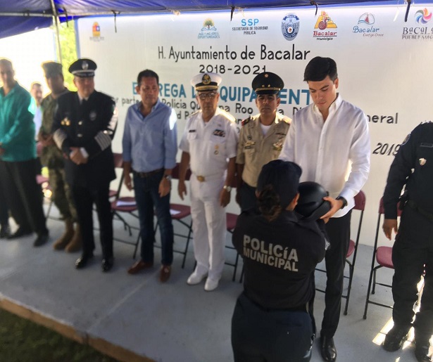 En el marco de la entrega de equipamiento al cuerpo policial de Bacalar, el titular de la SSP mencionó que se requiere implementar filtros a la entrada y salida de la ciudad, así como la colocación de cámaras de video vigilancia que permitan atender el tema de los robos.
