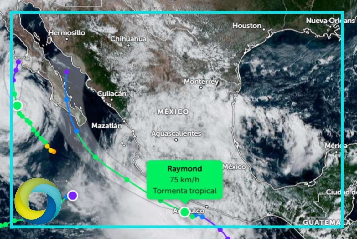 Raymond está localizado a 125 kilómetros al sur del municipio de Tecpan y 190 al sur de Zihuatanejo , en la región de la Costa Grande . Presenta vientos máximos sostenidos de 75 kilómetros por hora, rachas de 95 kilómetros por hora y desplazamiento hacia el oeste-noroeste a 22 kilómetros por hora.