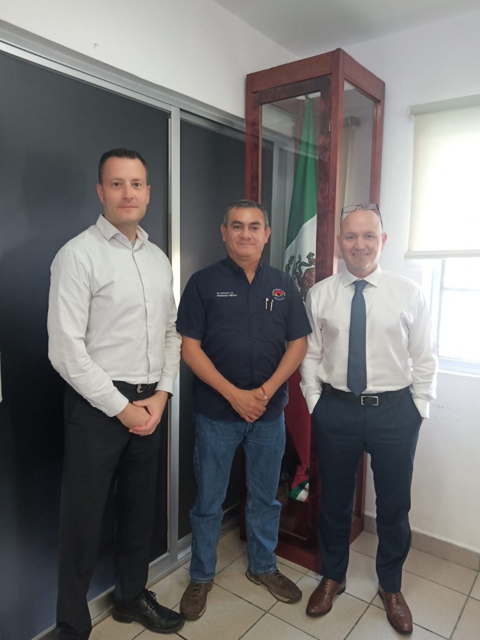 A través de un comunicado se informó se reunieron el titular de la Secretaría Municipal de Seguridad Pública y Tránsito (SMSPyT), Rubén Oyarvide Pedrero; con autoridades de la Embajada de los Estados Unidos, personal de la Real Policía Montada de Canadá; y el agregado de la ATF (Buró de alcohol, tabaco, Armas y explosivos) de Estados Unidos.