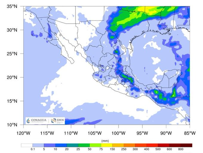 Por otro lado, canales de baja presión sobre el norte, centro y sureste del territorio nacional, en combinación con inestabilidad atmosférica y el ingreso de humedad proveniente hacia el interior del país, originarán lluvias y chubascos con descargas eléctricas en las mencionadas regiones, incluyendo la península de Yucatán.