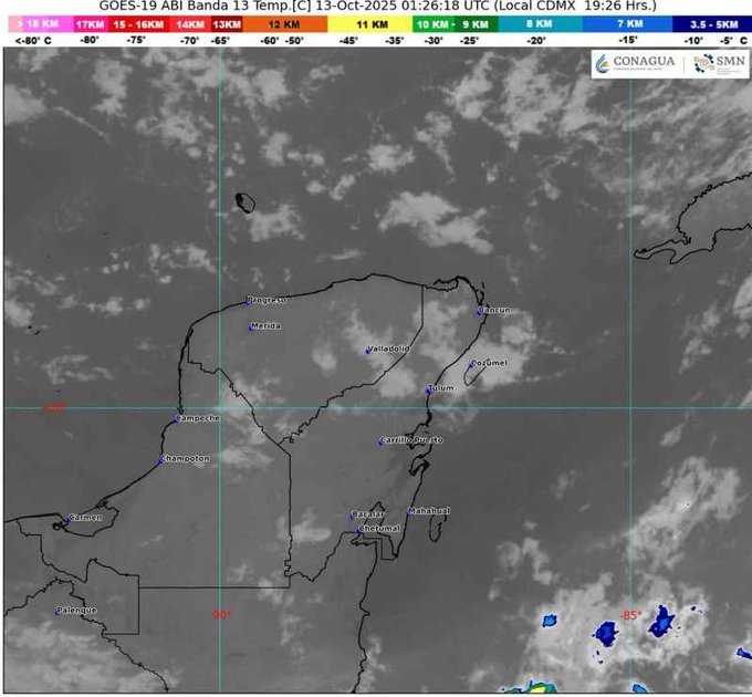 Temperaturas máximas de 28 a 32 grados centígrados y chubascos con lluvias puntuales fuertes (25 a 50 mm), es el pronóstico del tiempo para Quintana Roo, anunció este lunes 13 de octubre el Servicio Meteorológico Nacional (SMN).