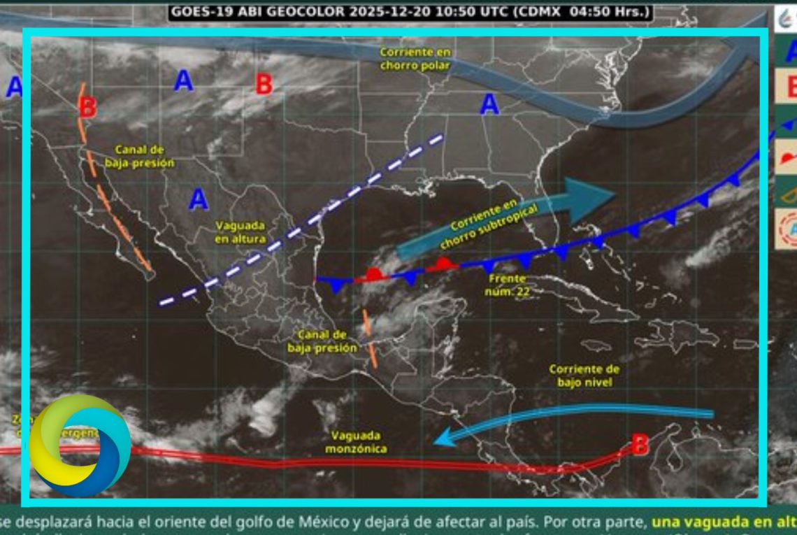 Finalmente, un anticiclón en niveles medios de la atmósfera se posicionará sobre el noroeste mexicano y propiciará tiempo estable y sin lluvia sobre entidades del norte, noroeste y occidente del territorio nacional, así como el incremento de las temperaturas máximas en esas regiones.