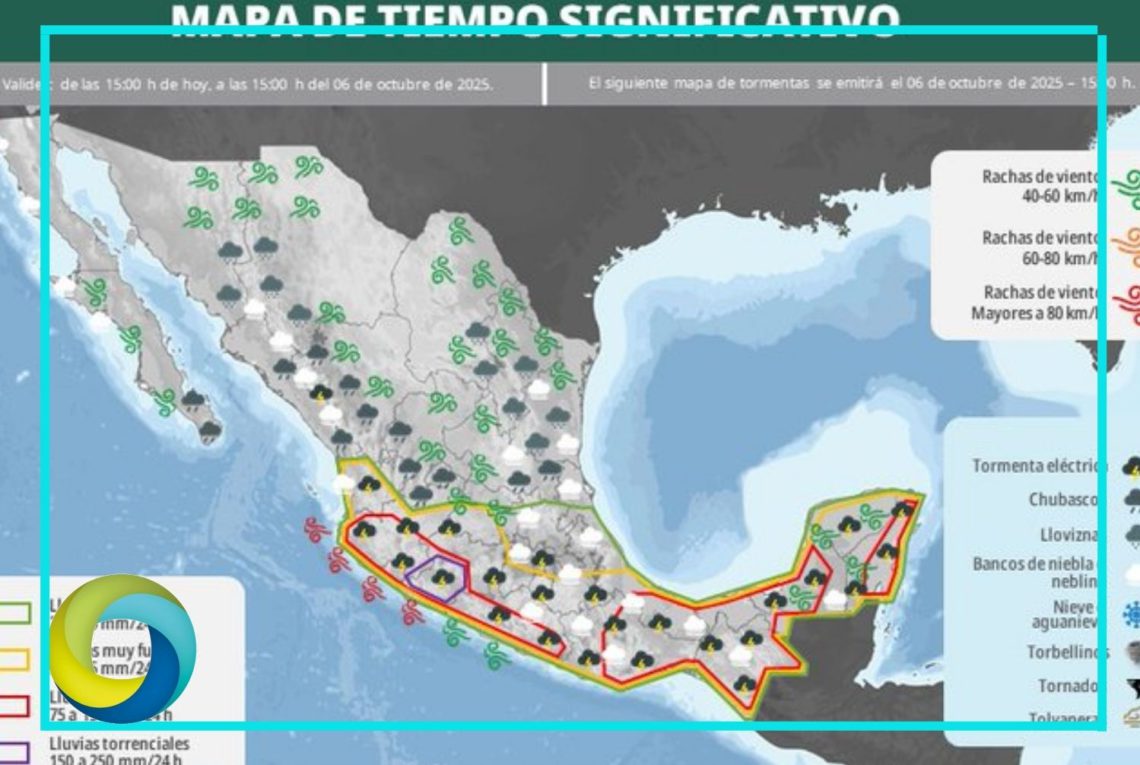Agrega que todas las lluvias estarán acompañadas con descargas eléctricas; mismas que podrían reducir la visibilidad en tramos carreteros, originar encharcamientos e inundaciones.